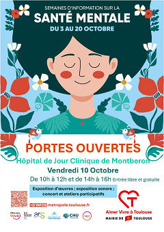 En longeant le chemin de ronde de la clinique de Montberon, poussez la porte de notre hôpital de jour. Un lieu d’accueil, de bienveillance, de reconstruction et de réhabilitation où se croisent des personnes de 18 à 78 ans. A l’occasion de la journée portes ouvertures du vendredi 10 octobre, venez découvrir les talents insoupçonnés de l’HDJ, exposition d’œuvres, exposition sonore, concert et ateliers participatifs ouverts à tous. Nous vous attendons nombreux pour un moment de partage, de rencontre et d’échange.